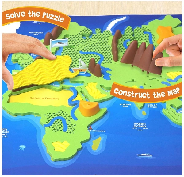 • Interactive Learning: This hands-on 3D puzzle helps kids visualize and understand the world’s physical features, such as mountains, rivers, and oceans.