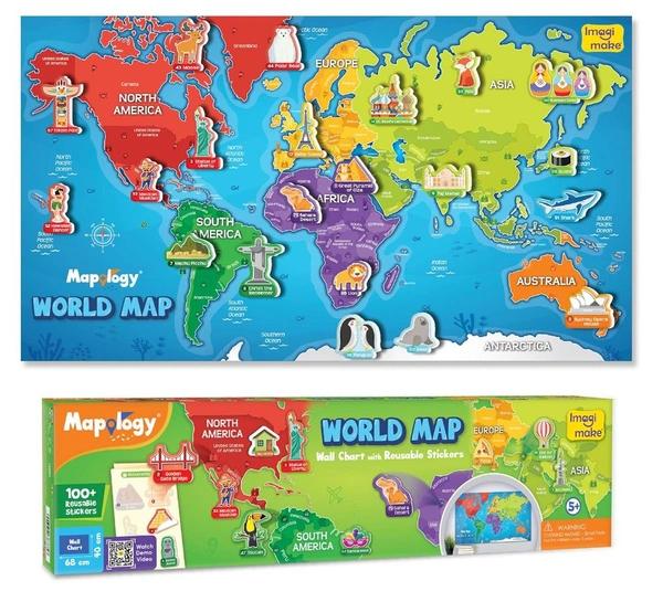 Imagimake Mapology World Map with Reusable Stickers - Educational Geography Toy for Kids 5+ Years Delivery Time: 2-3Days