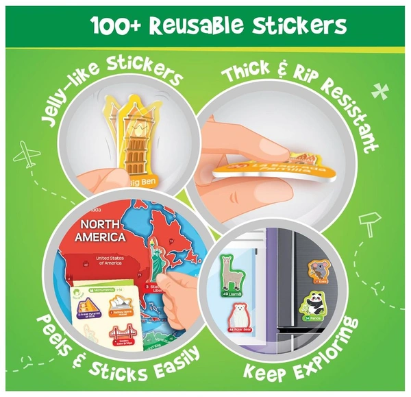 - Reusable Stickers for Endless Fun: Let your child explore and learn with vibrant, reusable stickers that make geography interactive and engaging.