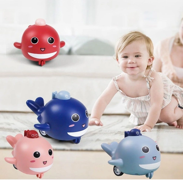 Delight your little one with this adorable Whale Fish Press & Go Toy! This charming light blue whale is perfect for encouraging crawling, bath time fun, and active play for babies and toddlers aged 1-3 years. Simply press down and watch it zoom across the floor or float in the bathtub - no batteries required!